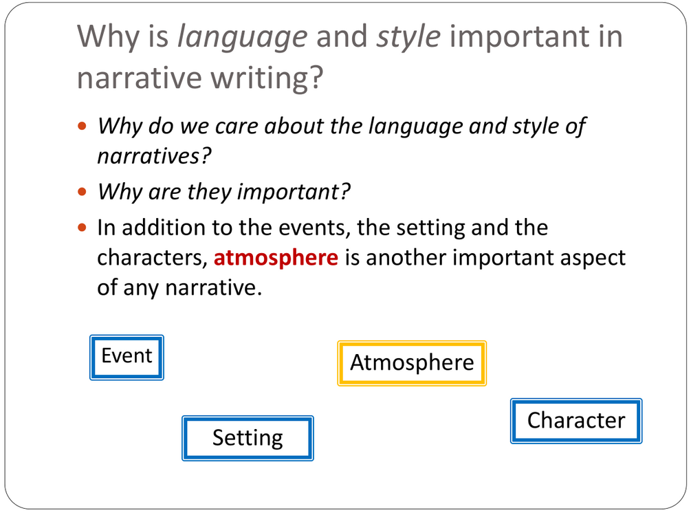 Learn how to write an immersive and atmospheric narrative. Study the stages of the narrative plot structure, characterisation, the use of narrative devices as well as the language and style of story telling,with examples from renowned passages in literature.